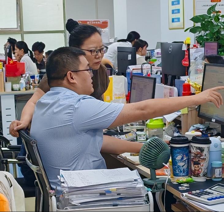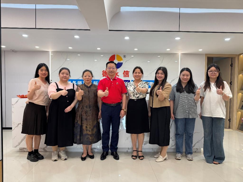 为进一步加强校企合作,深入了解学生实习与就业情况,推动产教融合向纵深发展,4月22日下午,会计学院副院长杨旻教授、税务系主任李志凤副教授、税务系副主任雷雨老师及会计学院张翠凤教授、朱小云副教授和丘晓琳玲老师一行前往深圳德永信财税集团参观交流,并亲切看望慰问了会计学院大四实习生及毕业后就职于该集团的校友们。德永信财税集团总经理冼朝卓先生、人事经理袁春先生热情接待了杨旻副院长一行。