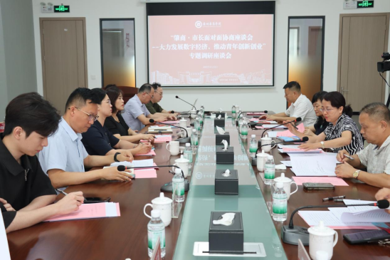 我校与会人员就数字经济专业建设、产教融合模式、创新创业教育及校地合作、青年在创业过程中存在的困难、希望政府如何支持解决等问题进行了深入交流与探讨。