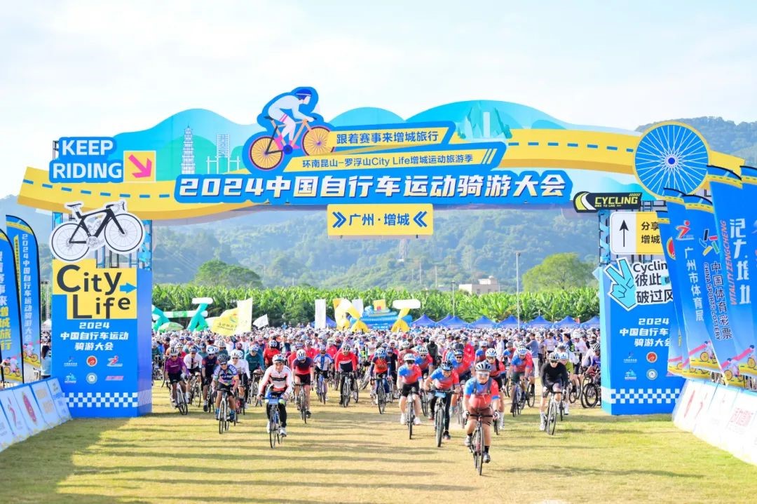 10月27日,2024中国自行车运动骑游大会在广州市增城区举行。本次骑游大会由中国自行车运动协会、广州市体育局和广州市增城区人民政府主办,广州市增城区文化广电旅游体育局承办,广州市增城区“百县千镇万村高质量发展工程”指挥部办公室、广州市增城区派潭镇人民政府、广州市增城区小楼镇人民政府、广州市增城区中新镇人民政府协办,广东省社会体育和训练竞赛中心、广州市体育彩票管理中心、广东省自行车运动协会支持。5000名来自全国各地的自行车骑行爱好者齐聚增城,穿梭在“环两山”的绿水青山之中,感受大自然的诗意馈赠,共享“百千万工程”的丰硕成果。