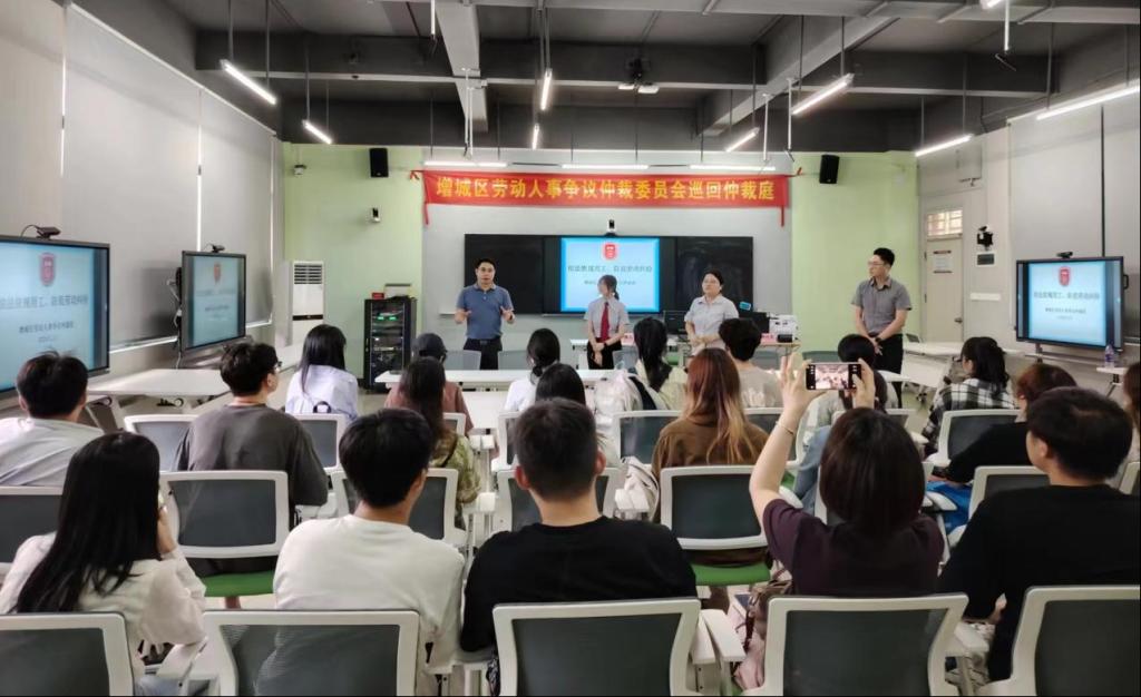 为落实学校领导关于“深化产教融合,构建产学研创全方位、全过程、深融合的高质量产教融合机制”的指示,打造产教融合共同体,支撑政校合作新路径,管理学院、人力资源产业学院与增城区人力资源和社会保障局共同推动建立的“增城区劳动人事争议巡回仲裁庭”于2024年5月23日在伟德体育正式开庭。这是广东省首次将巡回仲裁庭设立在高校内,标志着政校合作、协同育人迈出了新的一步。