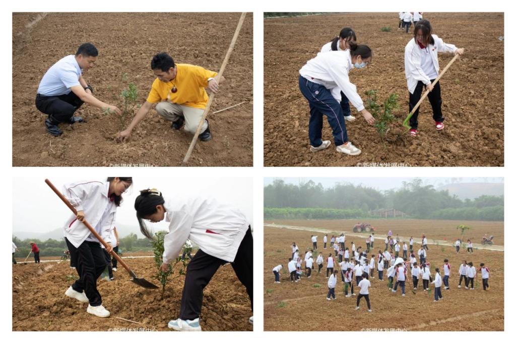绿美广东,青年先行。团四会市委副书记曾华智、黄田镇党委副书记、佛山市驻黄田镇帮镇扶村工作队队长梁柱及华商师生代表来到黄田镇江头上寨村进行植树护绿志愿活动。