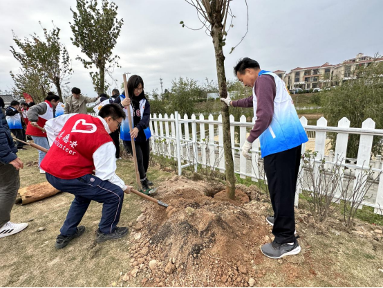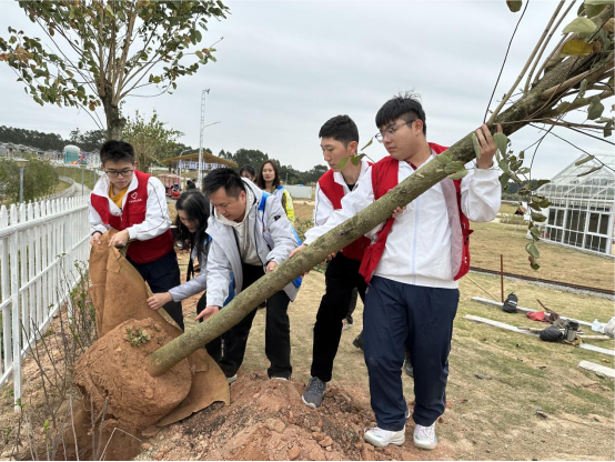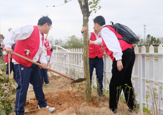 春回大地万物复苏,植树添绿正当时。2月27日下午,增城区总工会联合荔湖街在太平都市农业公园开展“携手添新绿,共植职工林”广州职工公益林增城片区2024年首场植树活动。为深入学习贯彻彻习近平生态文明思想,助力省“百千万工程”和绿美广东生态建设,引领华商青年担当力行、服务社会,我校团委组织10余名学生志愿者参与本次活动。