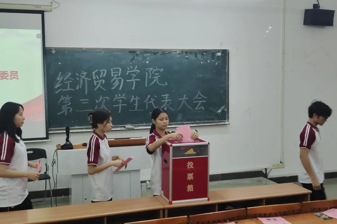 大会通过总监票人、监票人、计票人及经济贸易学院第三届学生委员会候选委员建议名单,进行正式投票。