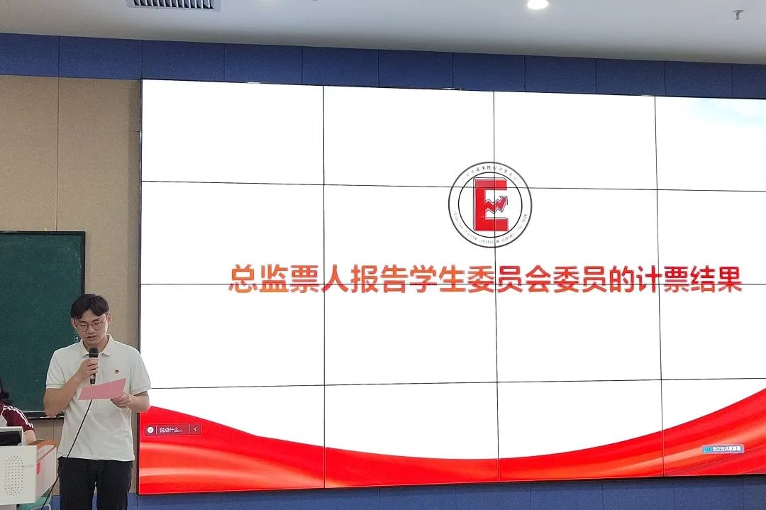 总监票人报告学生委员会委员的计票结果,主持人宣布学生委员会第三届委员当选名单。