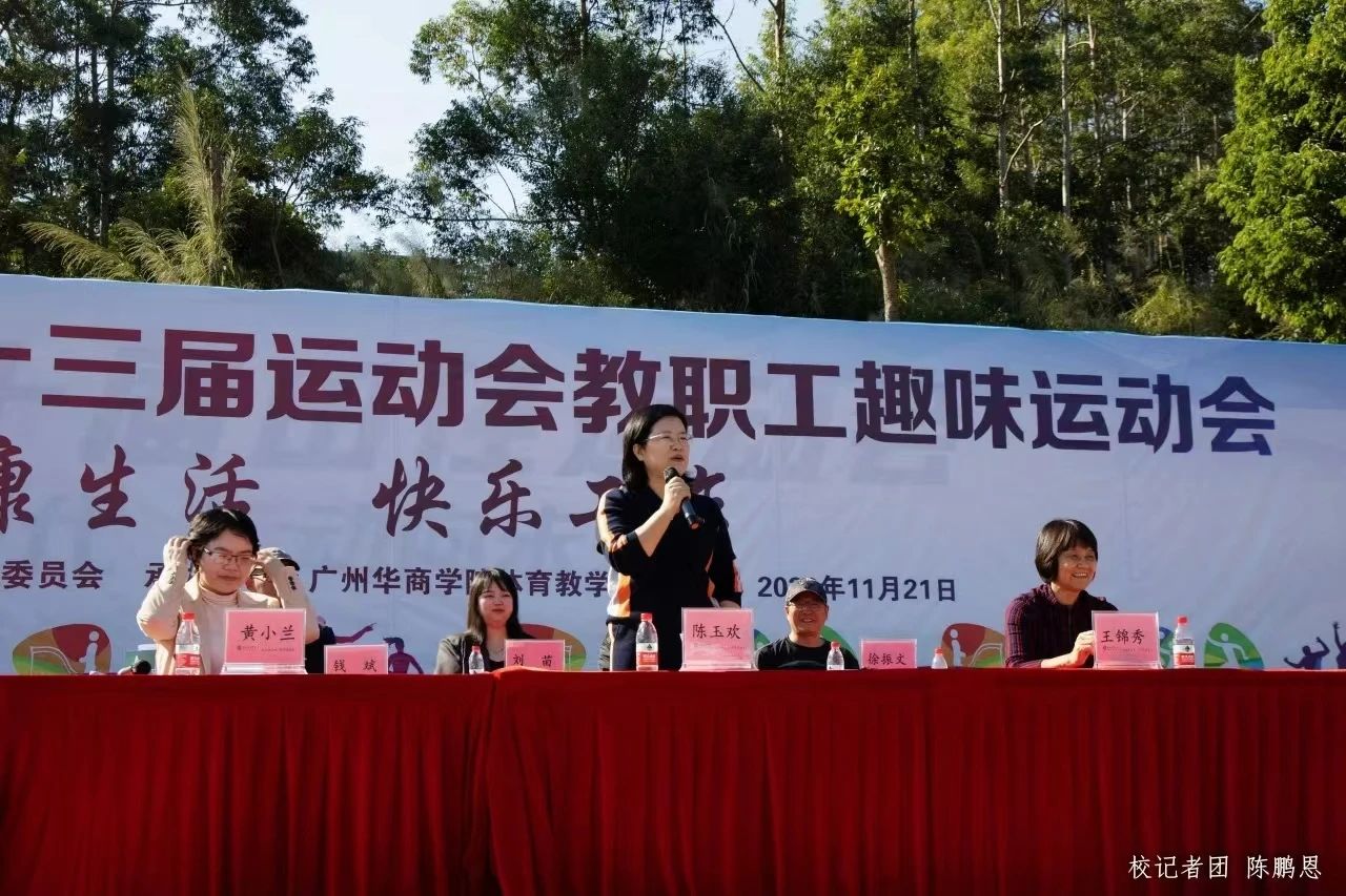 陈玉欢书记在开幕式致辞中谈到,本次教职工趣味运动会精神的真谛就是以人为本,在公平公正的环境中,充分凝聚和展现华商精神,激发每一位运动员的参与热情,在竞赛中实现自我完善和自我超越。教职工之间可以彼此增进沟通,增加了解,增强友谊,共同努力谱写华商学院的华彩篇章。