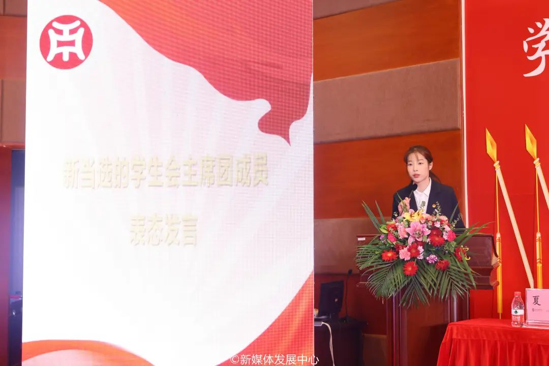 新当选主席团成员尤晓雯表态发言。伟德体育第三届学生会将以此为基点,全面学习宣传贯彻党的二十大精神,高举习近平中国特色社会主义思想伟大旗帜,秉承全心全意为同学服务的根本宗旨,坚定“从同学中来、到同学中去”的工作方向,努力提升学生会组织的同学满意度、大局贡献度和社会认可度,树立富有理想、关心同学、清新阳光的组织形象。