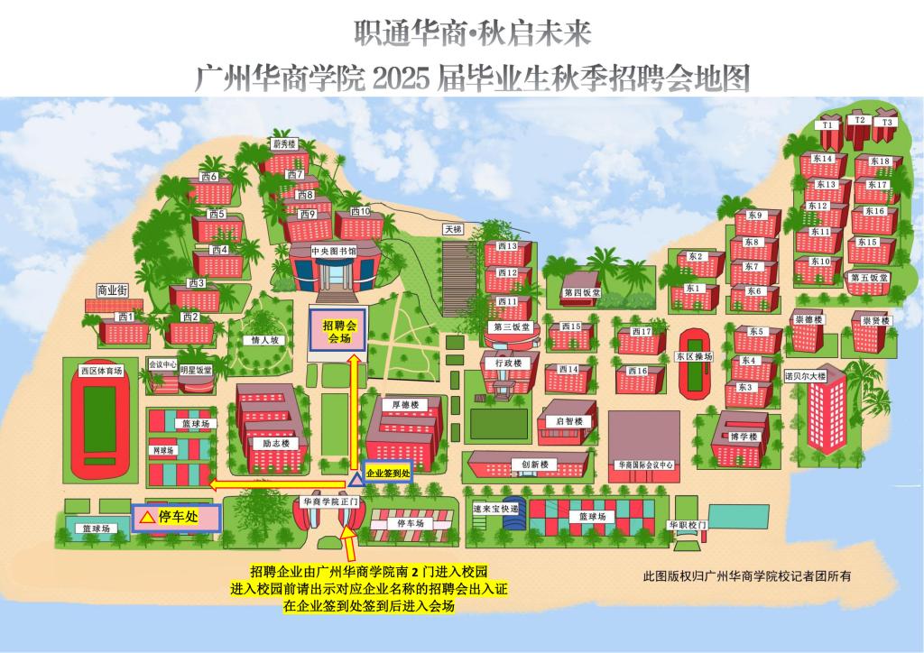 招聘会当天,参会企业需凭【招聘会出入证】进出校园,听从安保人员的指引,到规定地点停车;如步行入校,也需凭【招聘会出入证】进出学校。
