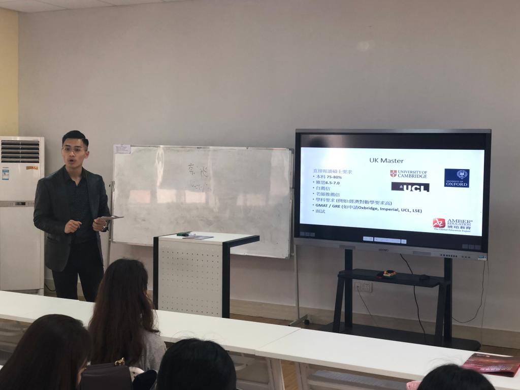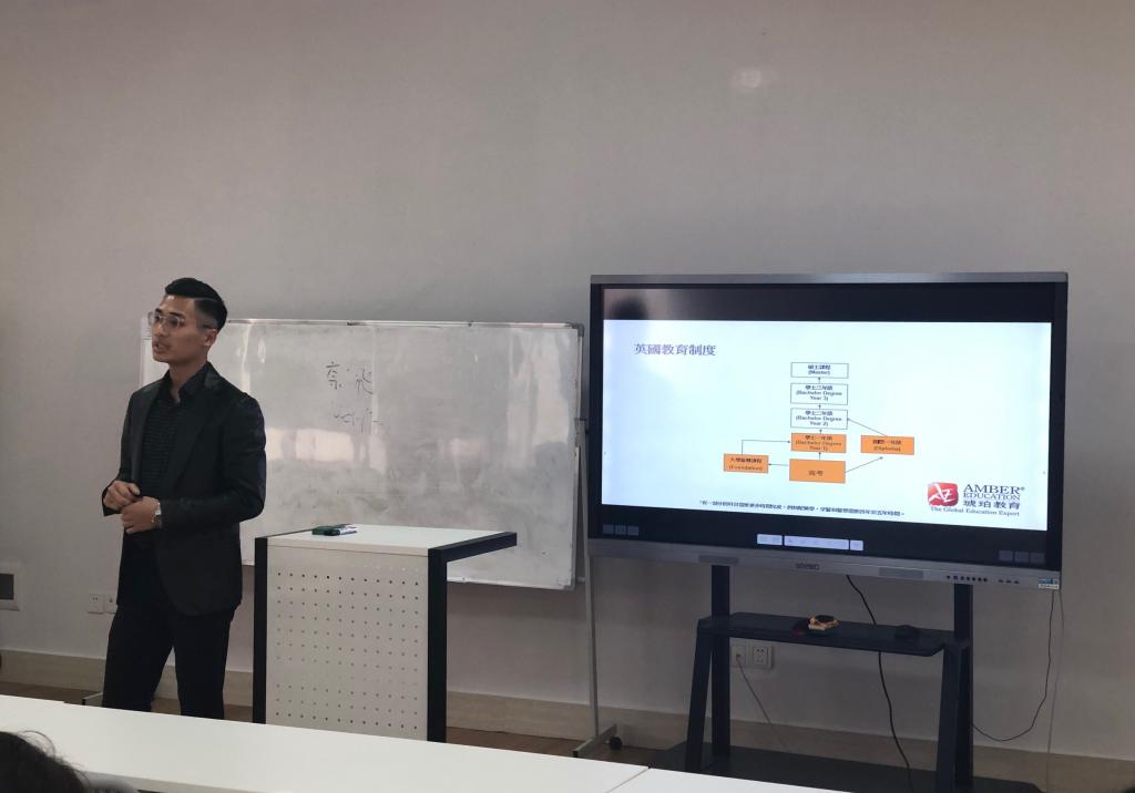 讲座上,Kelvin和Anson为同学们介绍了琥珀教育集团,详细讲解了英国的教育制度和硕士课程申请的要求。两位老师也给同学们介绍了有名的英国大学与其强项专业,并与大家分享了出国留学生活上需要注意的事项。