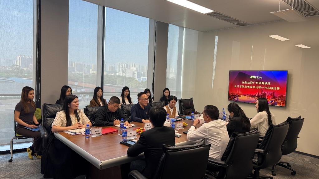 为进一步促进校企党建工作交流,深化产教融合,加强实习基地建设,2025年4月15日,会计学院党委书记刘善球一行率队赴天健会计师事务所(特殊普通合伙)广东分所调研及检查实习基地运行情况。此次调研以座谈会的形式展开。参加座谈会的有:天健广东分所总经理兼党委书记杨克晶、天健广东分所副总经理魏标文、天健广东分所人力资源与行政部经理范佳媚、天健广东分所人力资源部助理经理林芳等,会计学院今年在天健广东分所实习的部分学生也参与了此次座谈会。