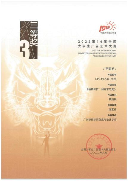 (近三年创意与设计学院学生在大广赛国赛中获得的证书)