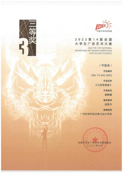 自2016年创意与设计学院积极组织师生参加各类学科竞赛,尤其是在全国大学生广告设计大赛中保持成绩连年攀升的强劲势头。近三年更是取得突破性进展:全国赛方面,2022年获三等奖4项、优秀奖12项;2023年斩获二等奖1项、三等奖3项、优秀奖8项;2024年实现历史性突破,摘得一等奖2项、三等奖5项、优秀奖10项。广东赛区同样表现抢眼:2022年包揽一等奖18项、二等奖40项、三等奖42项;2023年收获一等奖13项、二等奖14项、三等奖24项;2024年再创新高,一举夺得一等奖31项、二等奖39项、三等奖31项。这些骄人成绩正是我校创意与设计学院深化“以赛促教”、践行“艺商融合”人才培养模式的最佳印证。