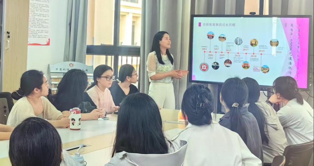 黄秀馨园长对此次课程实践高度重视,黄园长首先向同学们详细介绍了华商外语实验幼儿园的发展历程、教育理念及课程体系,帮助同学们建立对幼儿教育的立体认知。