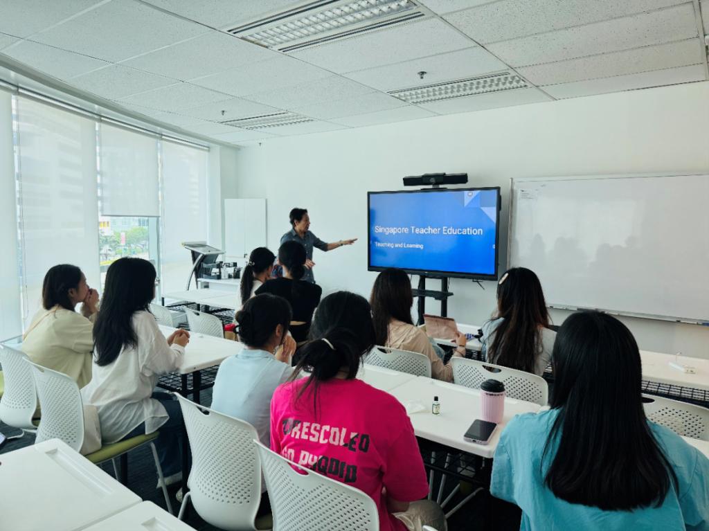 见习首日,新加坡资深教育工作者 Hafiz 以 “Live in Singapore” 为主题开展讲座。现场屏幕展示着新加坡多语言交通指引牌、传统节庆课程设计等鲜活案例,学子们认真倾听,深入了解当地 “英语为通用语、母语为文化根” 的语言教育政策,以及 “种族和谐、文化包容” 理念在教育领域的落地实践。这场沉浸式讲解,让学子们在 “走出去” 的第一站,便为理解多元背景下的小学教育打开新视角。南洋理工大学参访环节,师生们在引导下走进沉浸式教学实验室与智慧学习空间,实地了解国际前沿教育场景的建设思路。在沉浸式教学实验室,学子们参观了 VR 教学设备陈列区域,聆听讲解人员介绍科技在学科教学中的应用方向;智慧学习空间内,特色课堂设施的布局设计,直观呈现了 “以学生为中心” 的空间规划理念。通过实地参观,学子们对科技与教育融合的实践形态有了更具体的认知。