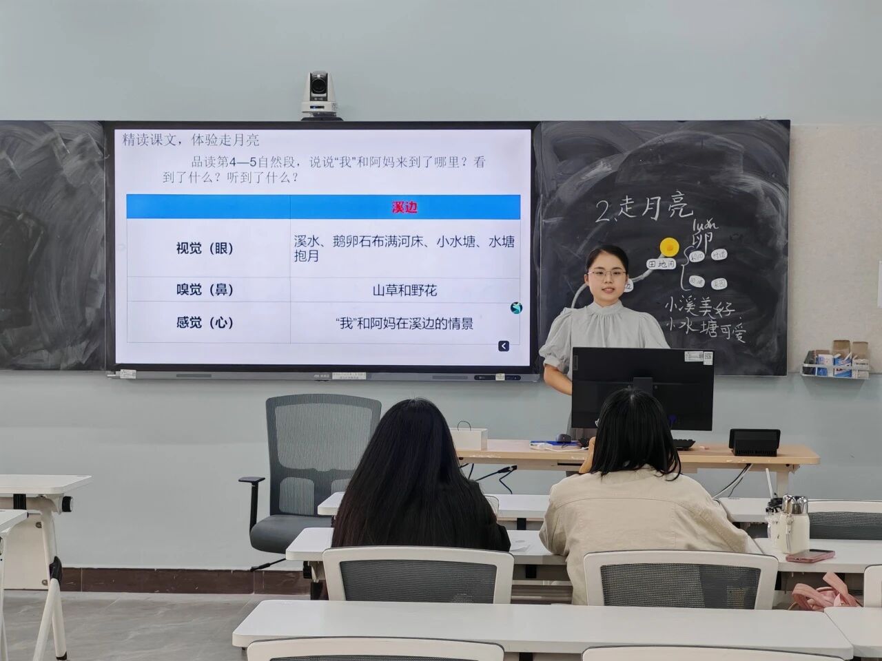 当日14:00前,参赛选手陆续抵达励志楼D205候考室签到,或低头梳理教学思路,或轻声演练教学片段,候考室内既紧张又充满朝气。随着赛程推进,选手们依次走进D203考场,开启“3分钟教学思路阐述+8分钟现场教学展示”的双重考验。