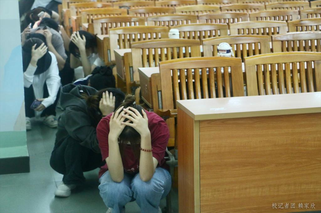 地震逃生演练,分为震时紧急避险、震后疏散、确认人员安全三个科目。5月16日下午,伴随着第一次警报声的响起,演练正式开始。各应急小组相互配合按照演练方案进行,课室任课教师组织学生原地避险,等待命令疏散。随着第二次警报响起,现场指挥果断下达震后疏散指令。课室任课教师指引学生分批疏散至西区足球场集结地点,由疏散引导组组长确认疏散人员安全状况。422人全部安全、顺利疏散到指定安全区域。整个疏散过程师生积极参与,环环相扣,紧张有序。