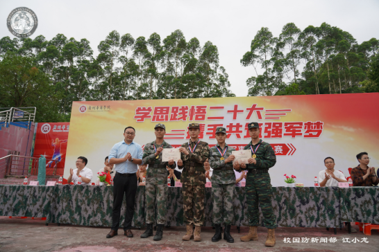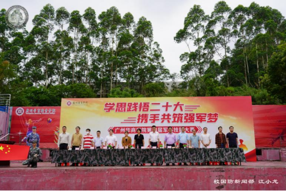 为深入学习宣传贯彻党的二十大精神,推进我校学习贯彻习近平新时代中国特色社会主义思想主题教育持续走向深入,进一步增强广大师生国防观念和爱国意识,5月9日下午,我校在增城校区西操场举办第四届军事技能大赛,本次大赛以“学思践悟二十大,携手共筑强军梦”为主题。党委书记苏宁,党委副书记、副校长王锦秀,党委委员、校长助理许娜,党委委员、武装部部长黄国富,党委委员蒋大锐,团委书记陈刚,各学院学工主任、辅导员,以及武装部老师出席活动。