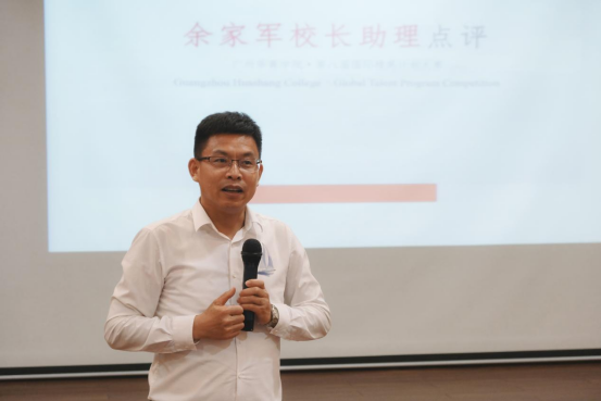 各小组展示完毕后,校长助理、创新创业学院副院长余家军对选手们的方案和表现作点评。他指出,参赛的同学们应该仔细思考各自茶饮品牌的商业模式核心,认真研究产品的深度与宽度,在这些方面还有待大幅提升。他也对参赛选手商业计划书的完整性表示认可,他认为计划书的成功离不开选手系统性的思考与周密的准备。他高度赞许同学们展示自己方案的台风与表达能力,并建议同学们以大赛为契机,打牢专业基础、结合流畅的口语表达能力、深刻思辨能力以及丰富的想象力。最后,他祝同学们拥有光明的前程。
