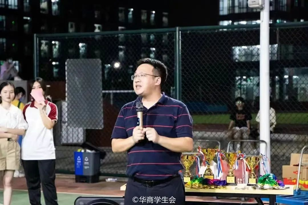 闭幕式上,校团委陈刚书记作总结讲话。他提到,学校坚持以习近平新时代中国特色社会主义思想为指导,紧紧围绕深入学习贯彻党的二十大精神这一主线,促进校园精神文明建设和校园文体活动品牌打造,建立健全促进学生身心健康、全面发展的长效机制。在本次“新生杯”篮球赛中,球员们自觉遵守比赛规则,发扬“友谊第一,比赛第二”的体育精神和友爱互助的团队精神,充分展现华商青年昂扬向上、飒爽自信的精神风貌。希望大家以此为契机,涵养初心不改、矢志不渝的信仰,以青春之名,提振士气、凝心聚力,鼓足干事创业精气神,用热情和汗水演绎激情与活力,用力量和拼搏弘扬新时代精神。