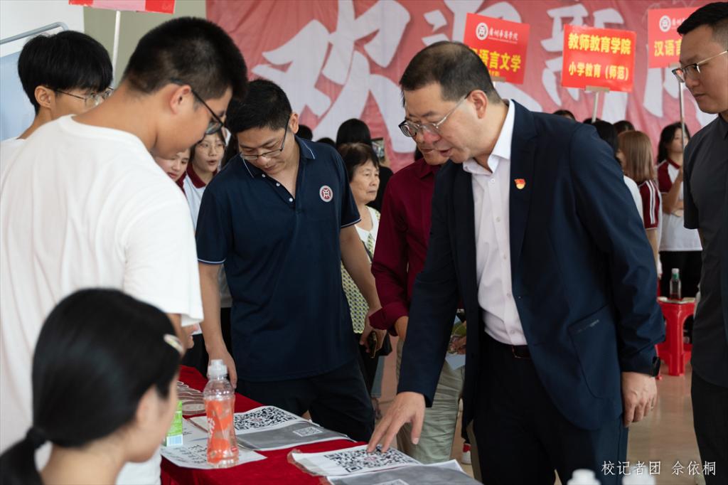 9月10日,我校文学院、外国语学院、传播与传媒学院、珠宝学院、创意与设计学院以及伟德国际betvlctor在四会校区开展迎新工作。执行校长郭银华,副校长王锦秀、吕峻闽莅临迎新现场,进行工作指导并慰问现场工作人员和学生志愿者。