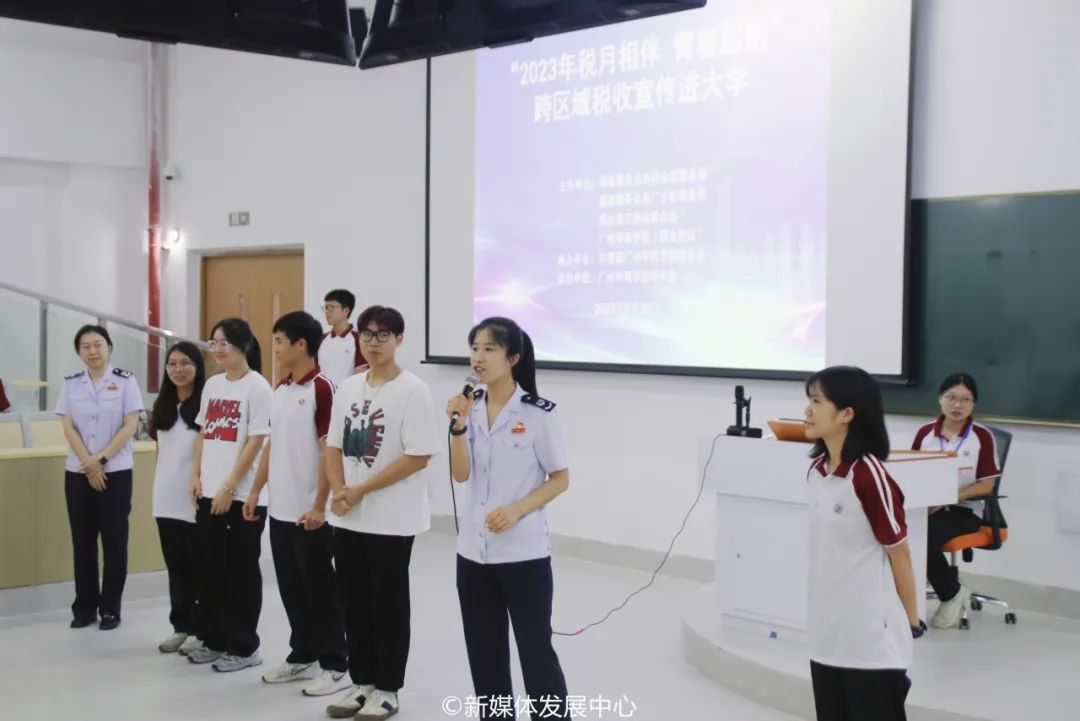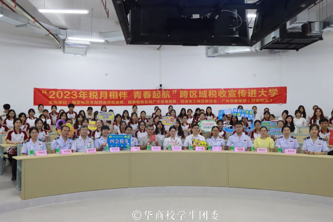 为助力大学生走稳走好创业就业第一步,推进校园税收普法教育和学生税收实践相融合,9月20日,国家税务总局四会市税务局、国家税务总局广宁县税务局、四会市工商业联合会联合我校开展的2023年“税月相伴 青春起航”跨区域税收宣传进大学活动顺利举办。伟德体育校长助理、四会校区党委副书记、管委会常务副主任覃少冰,四会市税务局党委委员、副局长杨炳歆,四会市工商联会员部部长梁金洪,广宁县税务局第一税务分局局长王培以及税务局、工商联、伟德体育(四会校区)相关工作人员参加本次活动。