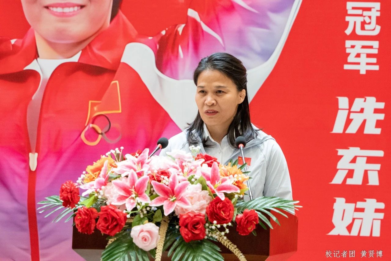 奥运冠军冼东妹女士以“坚定信念,成就梦想”为主题,用自己的职业生涯激励全体师生。冼东妹女士从四年级开始练习田径,之后进入体校。1988年,她从田径转练摔跤,同年进入省队,参加全国女子摔跤比赛获得第六名,其间受伤却仍坚持下来。1990年摔跤队解散后,由于柔道进入奥运会项目而被柔道教练看中,于是开始练习柔道。她以师姐为目标,于1992年获得青年赛冠军、成年赛冠军。在柔道生涯里,她多次参加全运会,共获得三届冠军、一届亚军、一届季军,还多次代表中国参加奥运会,夺得两届奥运冠军。尽管她遭受多次伤病且做过多次手术,但凭借着对柔道的热爱和坚定信念一直坚持着。