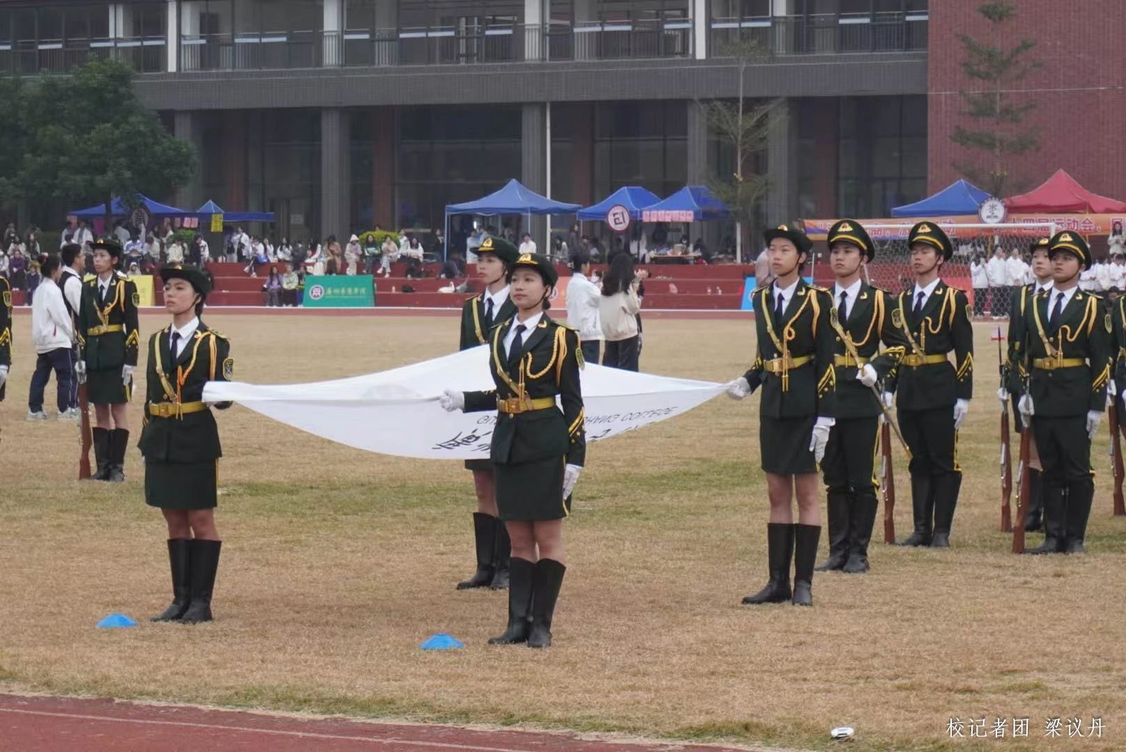 伴随着铿锵有力的《运动员进行曲》,国旗护卫队、彩旗方阵、各二级学院方阵、教职工代表队以及裁判员方阵陆续入场。华商学子神采奕奕,迈着整齐稳健的步伐,彰显青年的蓬勃朝气。