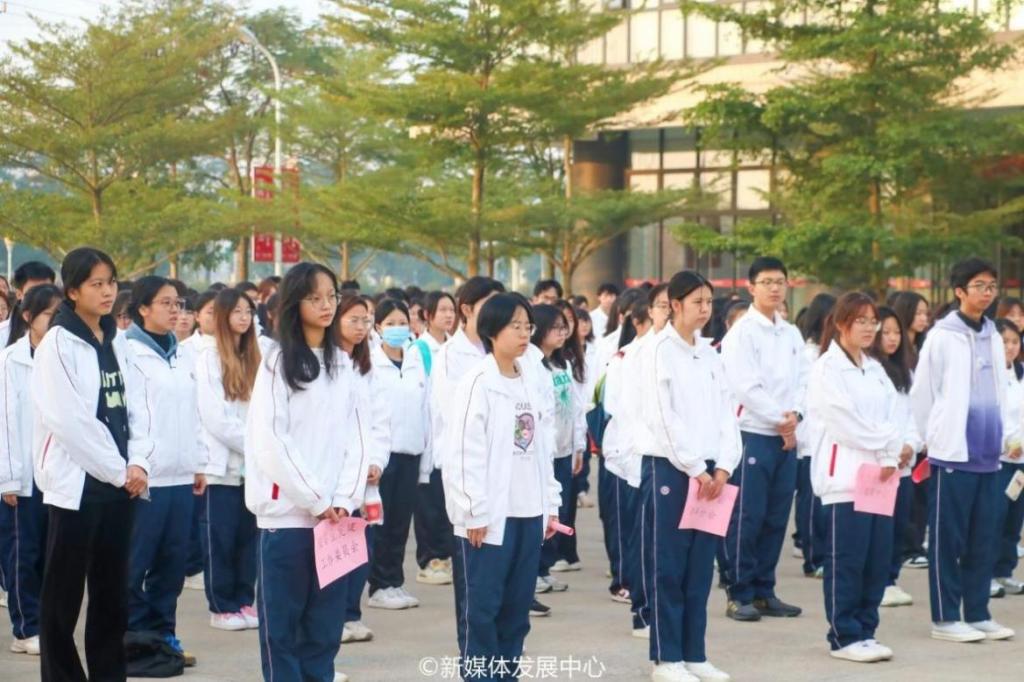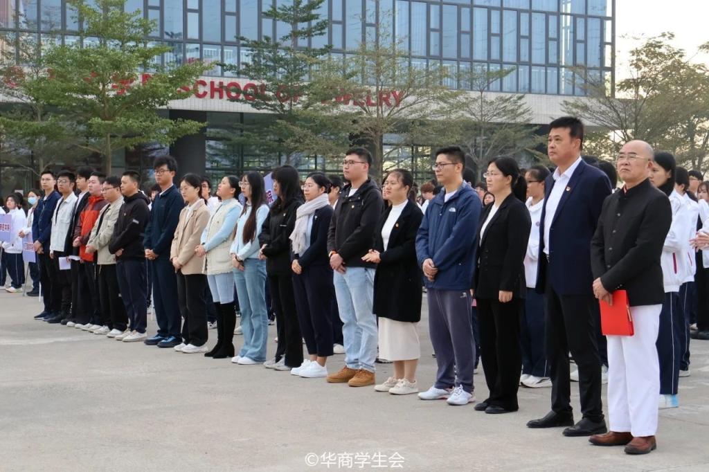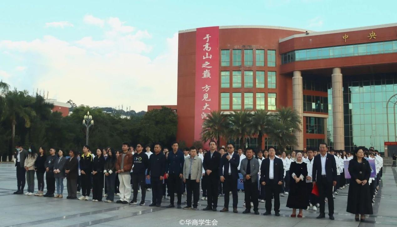 12月4日上午7:30,学校团委组织校院两级学生组织骨干在广州校区、肇庆校区两校区举行“国家宪法日”主题升旗仪式。学校党委书记陈玉欢教授,党委副书记、纪委书记、副校长吕峻闽,副校长王卫平教授,副校长许娜副教授,肇庆校区党委书记苏宁,校长助理覃少冰,学校各党群部门负责人、各学院党委书记、学工负责人、校院两级团组织负责人、学生会指导老师及校级学生组织代表、各学院学生代表近2000人参加本次升旗仪式。双校区升旗仪式分别由副校长许娜副、校长助理覃少冰主持。