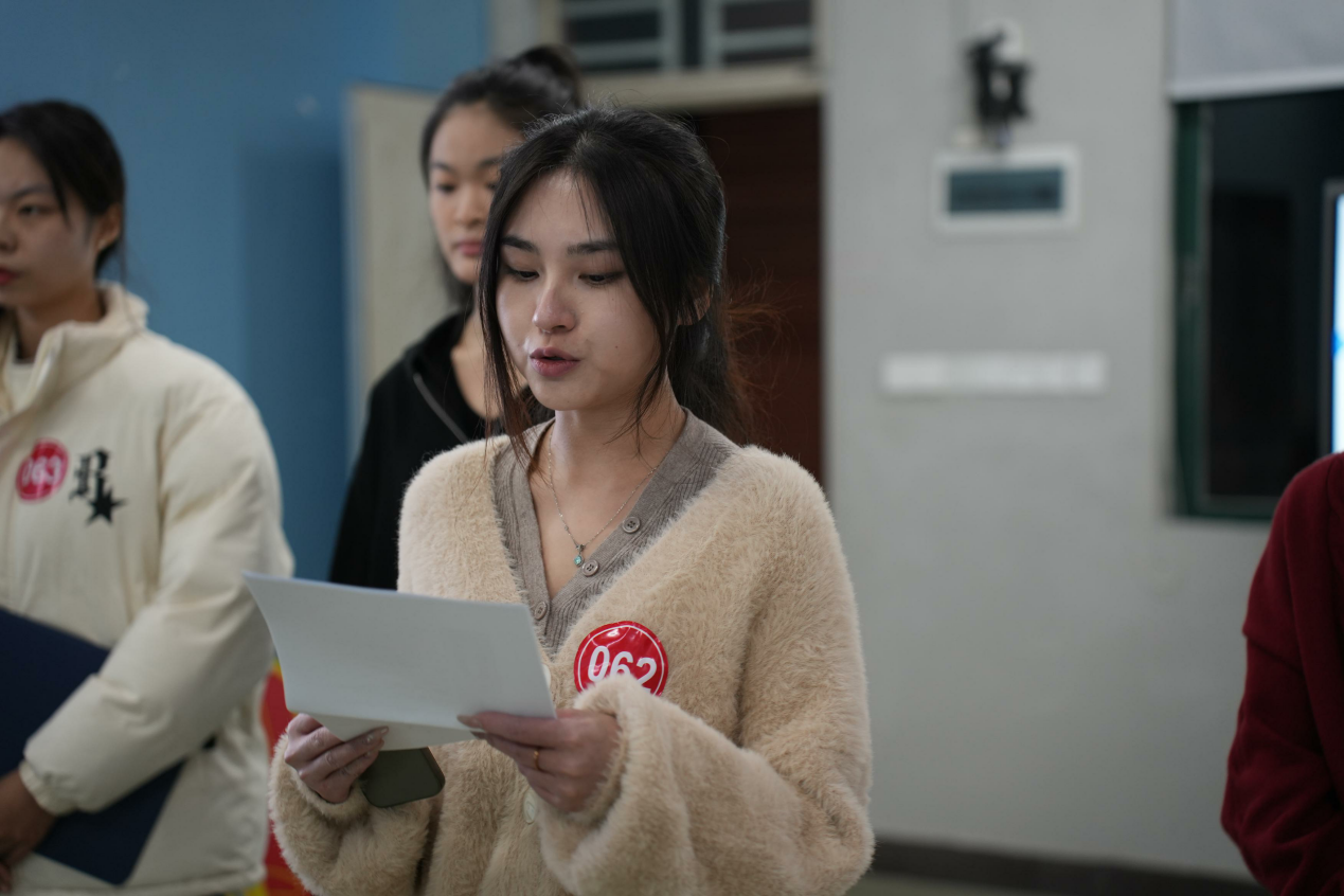 面试现场,华商学子穿着整齐衣装对即将进行的面试做足充分准备,等待的过程中也不忘利用时间整理资料打好腹稿。通过自我介绍展示各自的特长、相关志愿服务的实践经验。评委老师们综合面试者的临场表现、个人简历,本着公平、公正、公开的原则,考察同学们的口头表达、礼仪礼貌、气质谈吐等,遴选适合的志愿者。