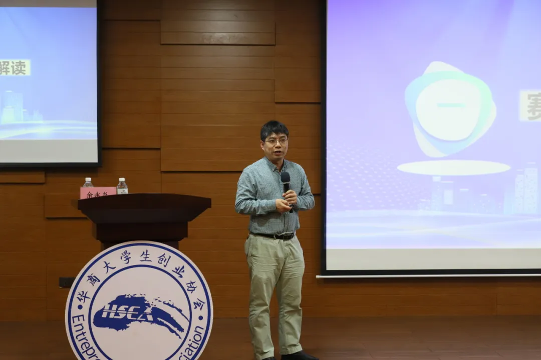 讲座伊始,余院长以宇树科技创始人王兴兴的创业故事与学生进行互动交流,围绕大赛“高教主赛道”“青年红色筑梦之旅赛道”“产业赛道”三大方向展开深度剖析,强调项目选题需立足国家战略需求,强化社会价值导向。