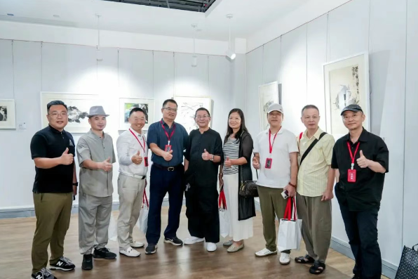 (领导及嘉宾在画展现场合影留念)