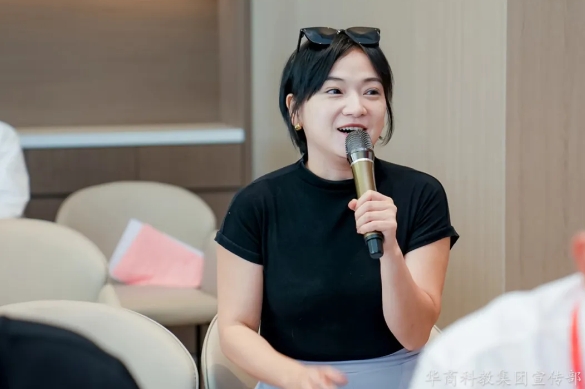 广州校友分会代表张健妍以《甲方→乙方→校友合伙人 我的十年跨界提案》为题,分享了自己从人力资源管理专业学生成长为市场营销工作者的跨界经历,介绍了所创公司当前的“All in AI”业务,感谢母校一直以来的支持,希望以自身为例为师弟师妹带去鼓励与引导。