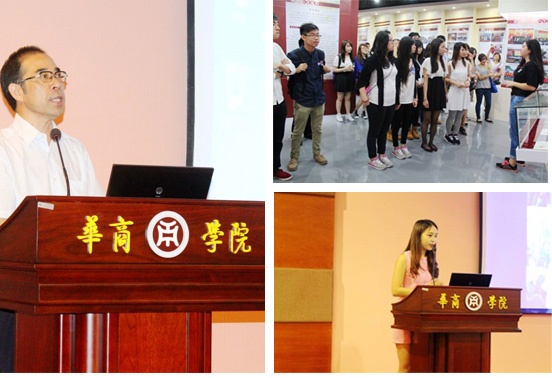 下午讲座完成后两校学生进行了艺术演出交流。外语系邹伟清同学和会计系王慧同学主持诙谐、幽默风趣;我院艺术团同学们展示了古筝、笛子、二胡等中国古乐器合奏,具有浓郁民族风情的舞蹈及当下青少年热爱的B-BOX(表演者是会计系谭劲龙同学,曾获省级比赛第一名),这些精彩的表演展现了华商同学们的多才多艺。