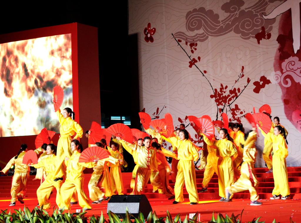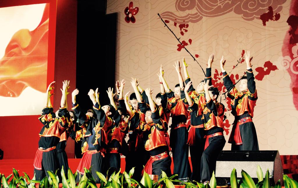 十年华诞千秋业,万缕春晖一代人。灯光四射,为华商学院披上一件金碧辉煌的彩霞。伴着雄浑有气势的乐章,功夫扇与南拳的组合表演拉开了本次晚会的帷幕。他们动若飞龙,缓若游云,既稳健又潇洒,引得台下观众一阵阵欢声雷动。