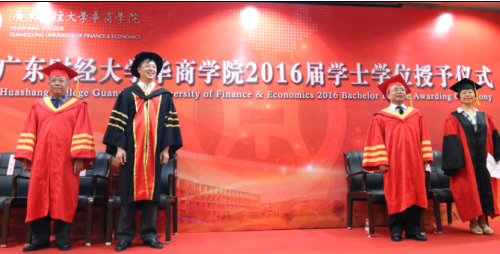 6月24日上午,我院2016届学士学位授予仪式分别在图书馆报告厅、国际会议中心报告厅和启智楼一楼三个会场举行。董事长廖榕就,广东财经大学副校长于海峰、王廷惠,华商学院院长陈玉川,副院长王列耀分别为600名毕业生代表颁发学位证书。