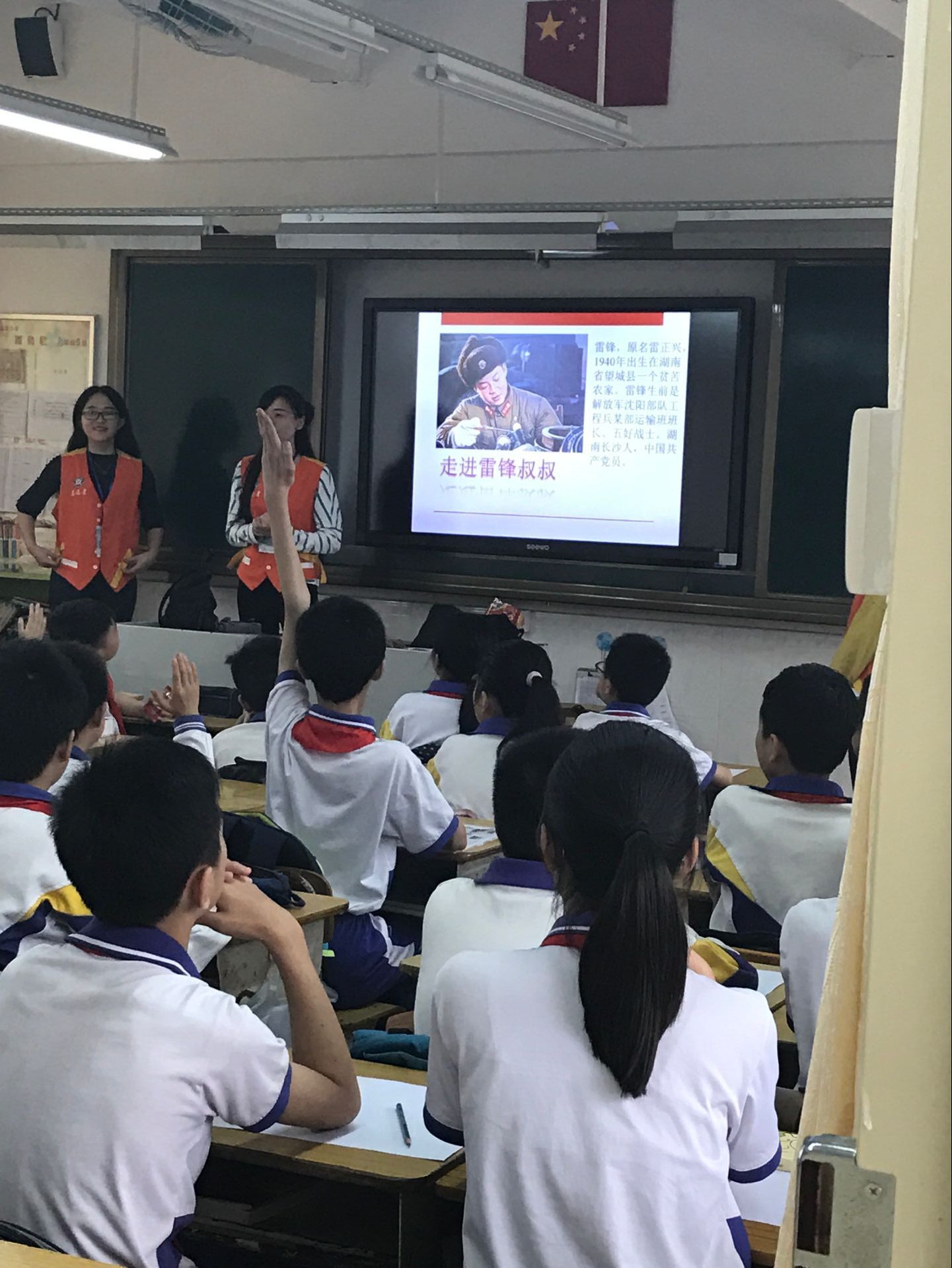 本次支教活动持续一个月,分三次进行,支教对象分别为增城荔江小学四、五、六年级的学生。三次支教的授课内容均围绕雷锋月、以雷锋精神为主题。课程主要包括讲演雷锋故事、红军感人故事,记录身边好人好事,画出心中的雷锋,开展特色雷锋课堂,户外拓展等。志愿者们充分地将学生特点与课程内容相结合,不断丰富课程内容,使学生们都能融入课堂,从中学习雷锋系列好人精神。