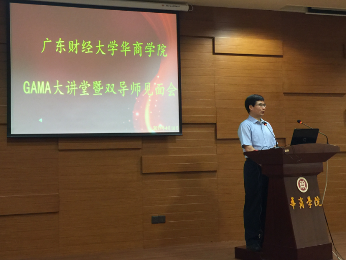 4月16日上午,广东财经大学华商学院GAMA大讲堂暨“双导师”见面会在图书馆报告厅隆重举行。2016级GAMA班实践导师陈福彬、付细军、高符生、葛芸、康淑敏、刘乐仁、王平、肖斌和学术导师蔡祥、胡玉明、林斌、刘善敏、漆江娜、王华、文芳、张程睿、刘中华等17位导师以及广东省管理会计师协会秘书处梁芳菲女士出席了本次活动。同时出席的还有华商学院副院长郭银华教授、马玉珍教授。活动由马玉珍教授主持。