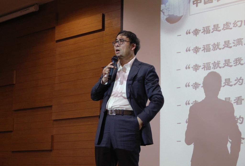 彭教授一边通过生动的演讲,一边给师生们播放相关视频,时而用自由联想的方式与师生们互动,通过猜出教授随机写下的词语与诗词,启示师生们:人是有同理心的,可以设身处地,换位思考,所以我们能感受生命中人性的美好,看到希望会产生喜悦,看到不幸会产生悲悯,这是人类不断进化的福流。他倡导师生们培养慧眼禅心,善于观察周边细小的东西,不要因为过分专注而视而不见。养心比养身更重要,主张多读书,多思考,常做运动,分担家务,帮助别人成长,与人为善等方式达到知行合一的修心,让自己活得快乐与福流。