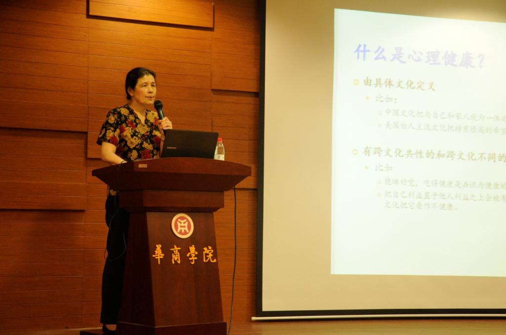 首先,段昌明教授向大家阐述了心理健康与文化的关系。她说,若要做好心理健康教育和咨询工作,一定要对咨询对象的文化背景有足够的了解。段教授在美国生活长达二三十年,她深刻感受到了美国的个人主义文化,认为中国人直接引用美国人的心理学理论和思想会导致我们难以接受,甚至会出现与我们中国传统文化背道而驰的现象。