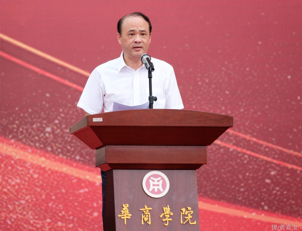 广东财经大学副校长王廷惠教授在致辞中代表母体学校对毕业生们送上最诚挚的祝贺,并对毕业生们提出了“笃定坚持理想”、“切实担当责任”、“坚韧不懈奋斗”、“永远坚持不懈”四个希望。