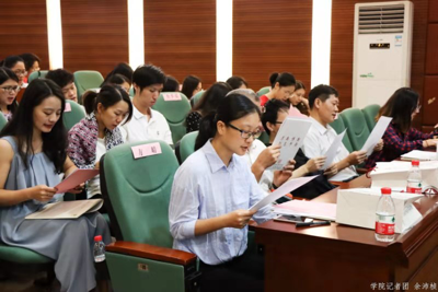外语系周竹南教授代表老教师上台发言,在表达对新入职教职工的欢迎之余,分享了他从教三十余年的经验和心得,呼吁教师应不忘初心,牢记使命,共同奋斗!文学院方晴老师担任新教师代表并进行发言,她结合自身经历,阐释了作为新教师对学校、教师以及教育的认识和体会,并代表新教职工表达了对教育事业的热爱。