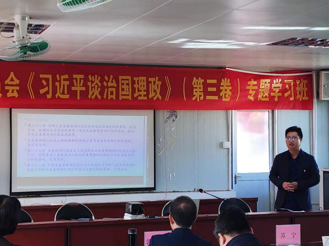 校党委书记苏宁同志主持学习班,并领学“自觉承担新形势下宣传思想工作的历史使命”。从学习领会习近平总书记谈宣传思想工作,新形势下宣传工作的历史使命,以及如何做好宣传思想工作等三个方面深入解读了相关内容。党委副书记郭银华同志结合个人学习体会,深入阐述《习近平谈治国理政》第三卷的重要意义,并结合学习内容对全体党员干部提出修身笃学实诚,工作脚踏实地和强化对党的责任的具体要求。党委副书记、纪委书记王锦秀同志围绕“增强推进党的政治建设的自觉性和坚定性”,从党员发展和党员队伍教育管理以及个人党性修养锤炼方面进行深入解读。