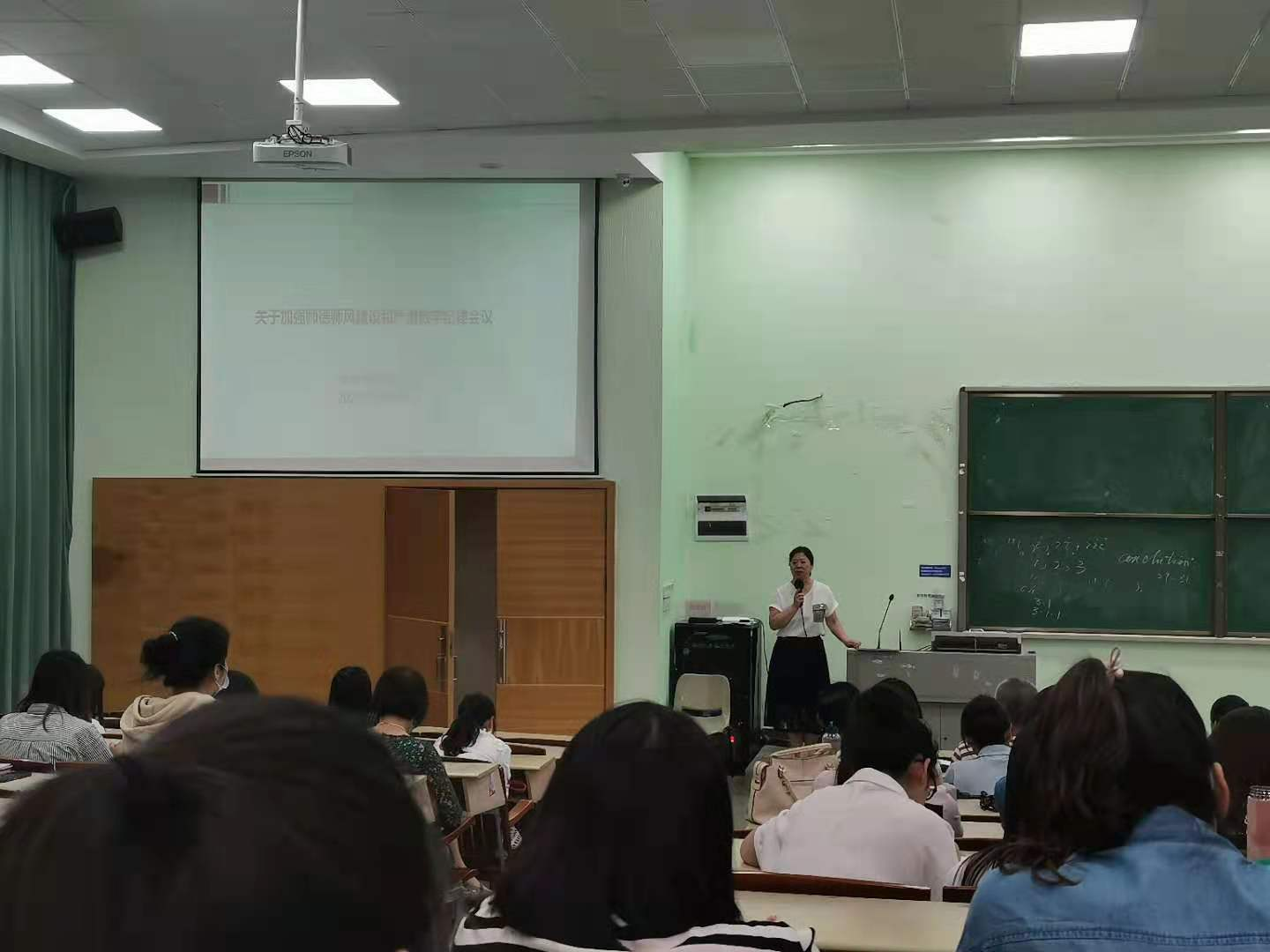 杨润秀副院长通过我院近期发生的教学事故来警示教师们。她认为教师的责任心不仅体现在教书育人上,还体现在日常的生活当中,教师按时上下课,监考不迟到,在生活和课堂中传达正确的价值观也是具有责任心的表现。
