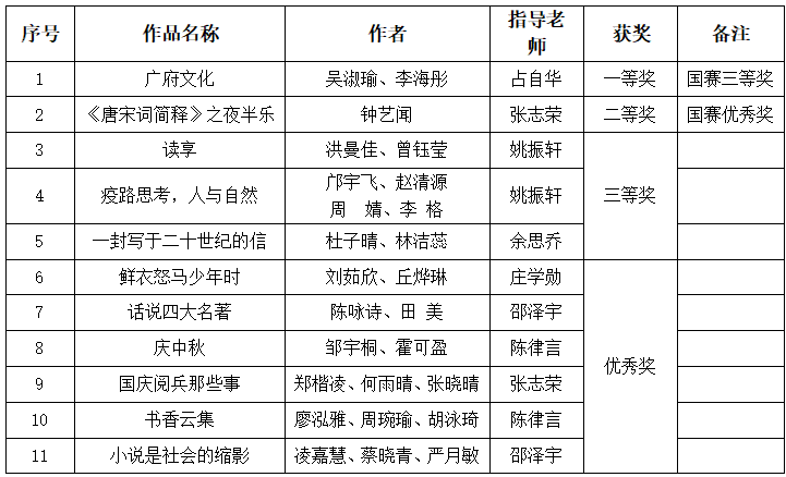 获奖名单