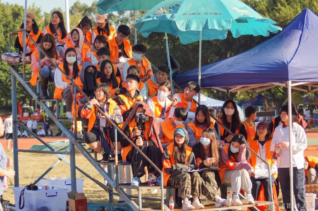 由裁判长顾伟农宣读第十二届田径运动会成绩,排名前三的分别是:第一名四会校区代表队,247.5分;第二名会计学院代表队,155分;第三名数据科学学院代表队,102.5分。第四名至第第八名则分别是管理学院代表队、继续教育学院代表队、文学院代表队、 健康医学院代表队、传播与传媒学院代表队。