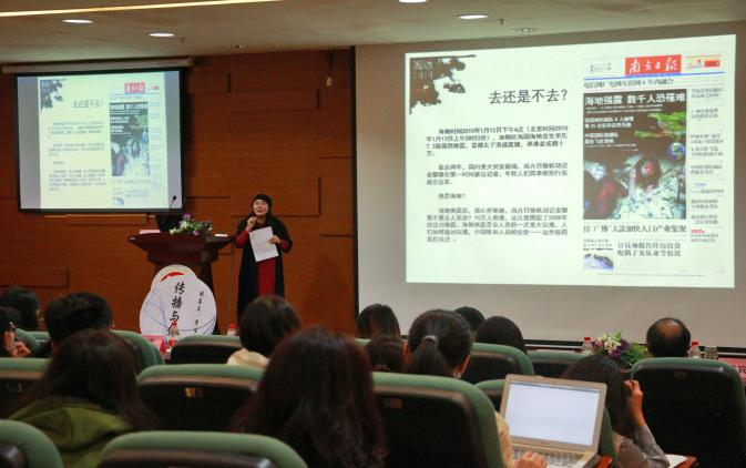 本次讲座的嘉宾张蜀梅老师是一位拥有丰富实践经验的记者,也是一位出版众多书籍的作家。曾经参与过多次诸如汶川地震、SARS病毒等突发事件的新闻报道。早在一年前,张蜀梅老师就为我院师生讲述过汶川报道中的生死时刻,现场座无虚席。时隔一年,传院师生热情不减,又一次等来了张蜀梅老师关于海地地震报道的经验分享。