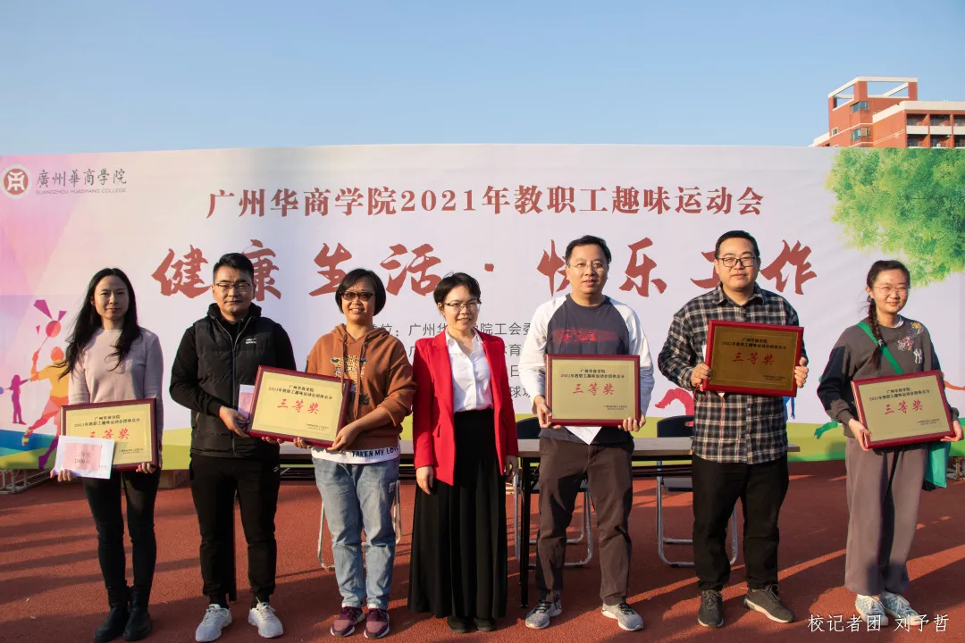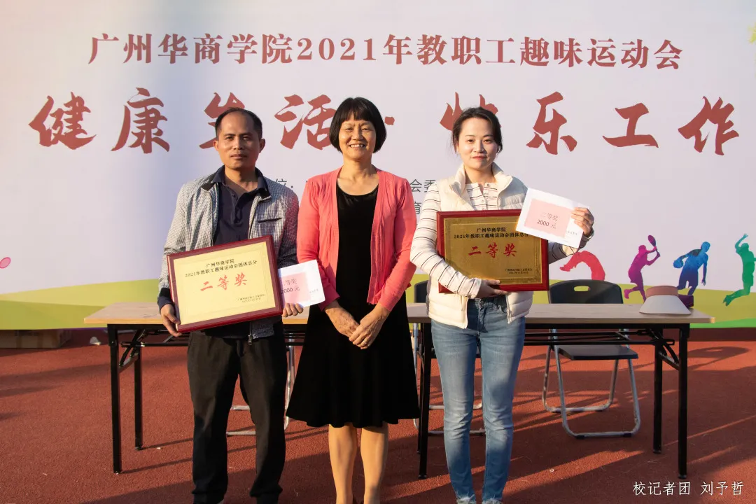 经过激烈的角逐,会计学院代表队以其完美的团队配合和积极的拼搏精神,拔得头筹。行政二队、外国语学院荣获二等奖;行政一队、文学院、管理学院、伟德国际betvlctor、金融学院及数据科学学院分别获得三等奖;经济贸易学院、传播与传媒学院、创意与设计学院及马克思主义学院获优秀奖;体育教学部获优秀组织奖。王锦秀副校长、黄小兰主席以及顾伟农主任作为颁奖嘉宾,为获奖队伍颁奖,并亲切慰问了参赛教职工。