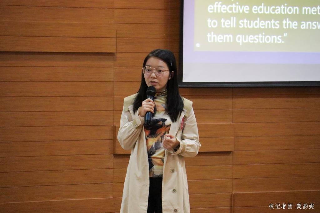 来自伟德国际betvlctor的王微雨老师结合自身的教学经历,阐述了对“最有效的教育方法不是告诉学生答案,而是向他们提问”的看法,其认为比起直接告诉学生答案,提问问题的教学方式更能激发学生对答案的好奇心,更能锻炼学生的创造性与辩证思维,更能增强教学互动性,激发学生的兴趣。