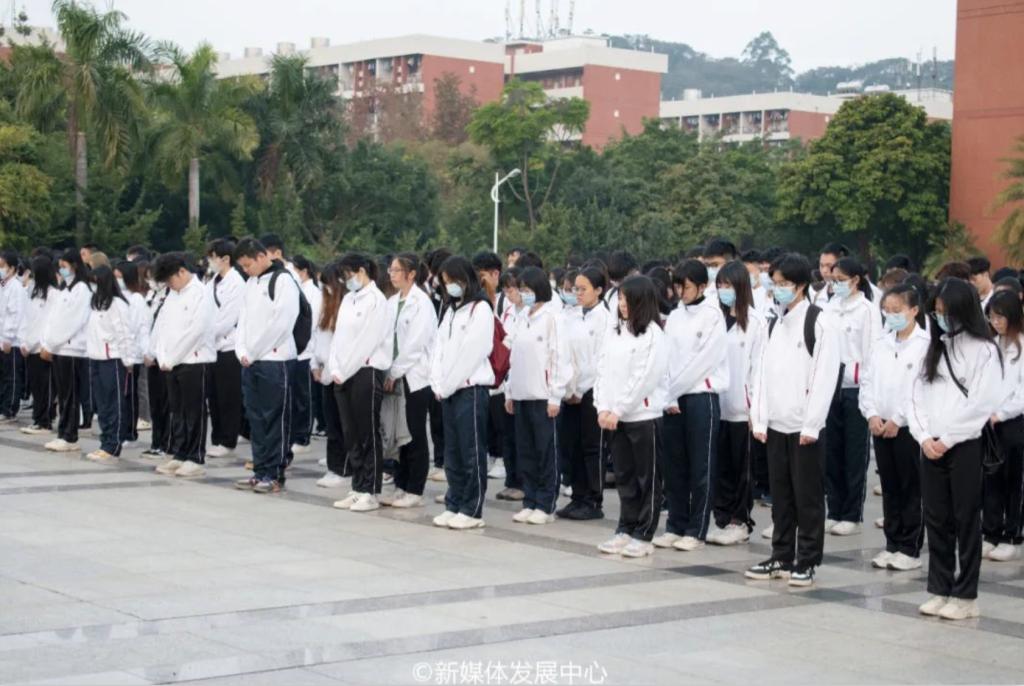 为深入开展爱国主义教育,弘扬民族精神,倡导和平友好理念,营造牢记历史、不忘过去,珍爱和平、开创未来的氛围,培养华商学子勿忘历史、牢记使命的爱国素养,学校团委于2021年12月13日7:30分别在增城校区中央图书馆以及四会校区操场同步举行国家公祭日哀悼仪式。国旗护卫队的旗手们迈着坚定的步伐,高举着鲜艳的五星红旗,彰显着新时代青年的英气。伴随着《义勇军进行曲》以及全体师生们的注视下,五星红旗冉冉升起,升至杆顶迎风飘扬,随后在全体师生的默哀中,缓缓下降三分之一。