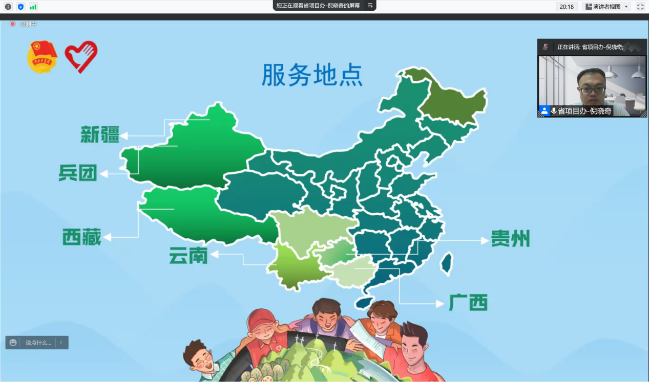 习近平总书记曾在全国高校思想政治工作会议上指出:“要鼓励高校学生把视线投向国家发展的航程,把汗水洒在艰苦创业的舞台,到基层去、到西部去、到祖国最需要的地方去,做成一番事业、做好一番事业”。为响应党和国家的号召,广泛动员我校2022届毕业生积极到祖国的西部、山区贡献青春力量。5月16日晚,我校团委在腾讯会议举办“2022年度‘振兴乡村,不负青春’西部(山区)计划”宣讲会。党委宣传部部长、校团委刘苗书记,团省委—志愿者行动指导中心倪晓奇老师,校团委陈巧巧老师,校团委杨图珍老师以及各学院学生代表近两百人收看了此次宣讲会。
