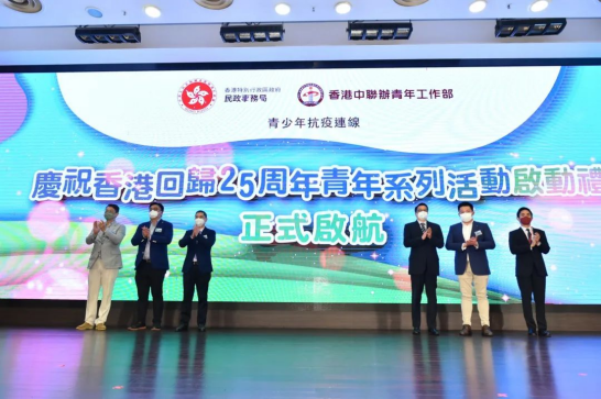 适逢香港回归祖国25周年,活动上举行了庆回归青年系列活动启动礼。今年,民政事务局和中联办青年工作部将共同主办“香港开新篇 青年创未来”庆祝香港回归祖国25周年青少年系列活动。香港各界120个青年团体参与,共组织策划了203项青少年庆回归活动,涵盖文艺演出、两地交流、实习培训、创业就业、创新科技、体育竞技、论坛研讨、历史文化体验、步操表演、义工服务等十大领域,希望吸引青年踊跃参与,营造香港青年欢庆回归的浓厚氛围。